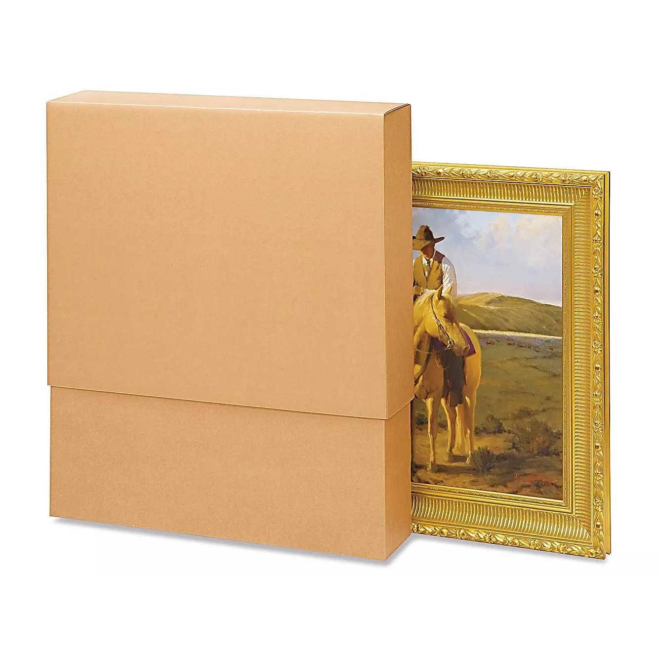 Különböző méretű képek, festmények, valamint lapos tárgyak sérülésmentes csomagolására és szállítására alkalmas dobozok.